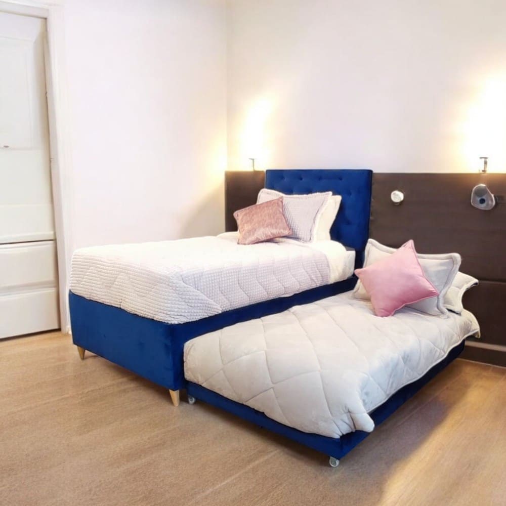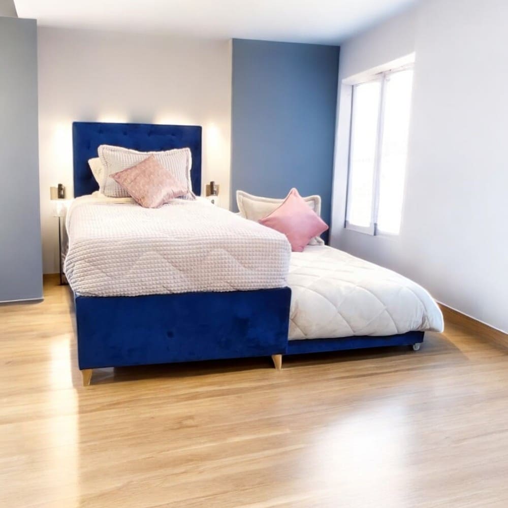 Con telas de excelente calidad, la cama Denver no solo es funcional, sino también atractiva. Viene equipada con una patineta o nido en madera, así como un colchón auxiliar, que puede ser de resorte o cassata, asegurando así el descanso ideal para tus invitados.